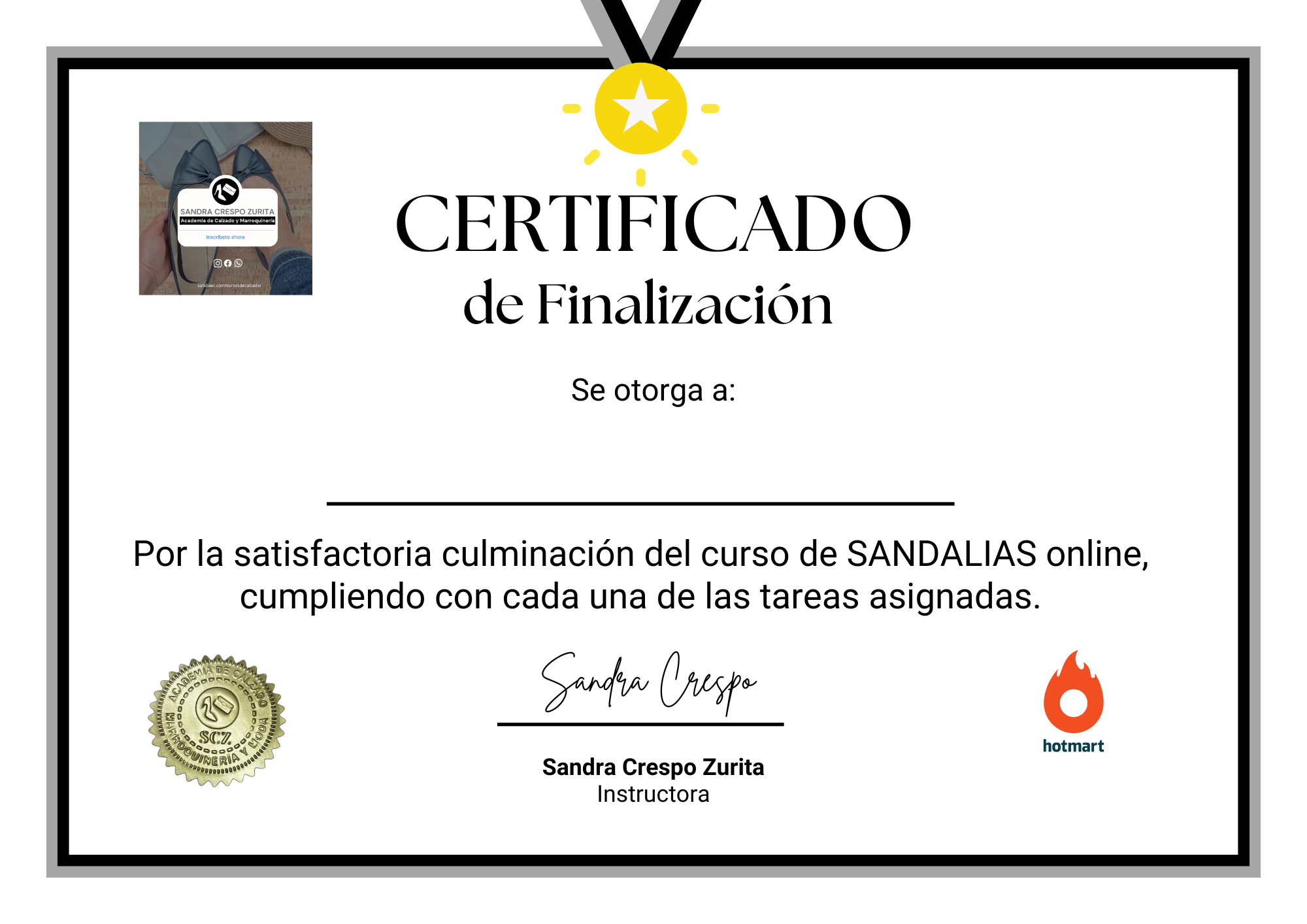 CERTIFICADO PERSONALIZADO AL FINAL DEL CURSO