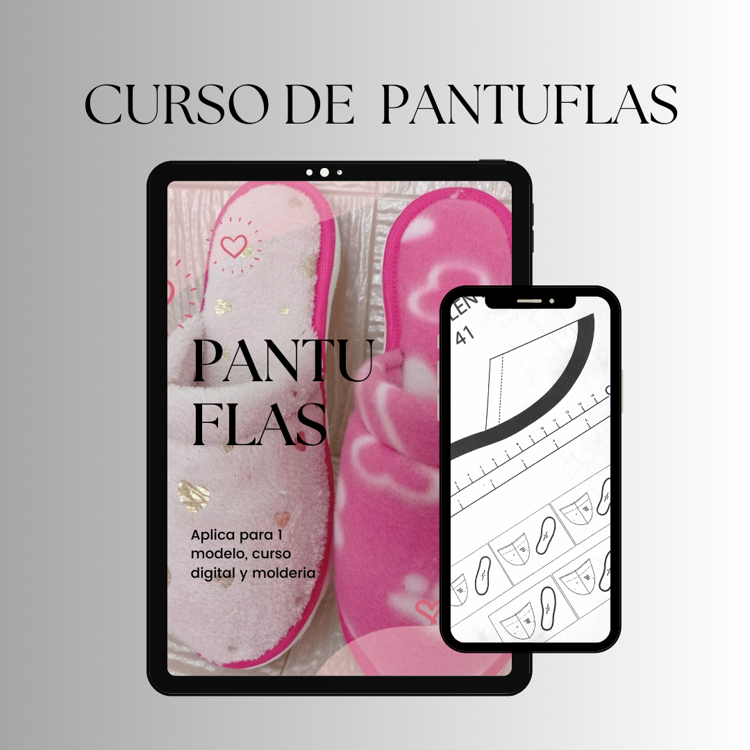 Recibe el curso de Pantuflas, 1 modelo, molderia desde la talla 34 a la talla 40 en PDF y el curso audiovisual.